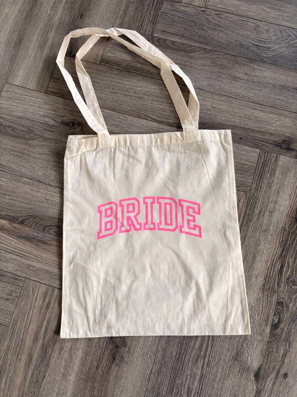 Discover our collection of bride tote bags, designed to carry all your wedding day essentials in style. From bridal prep to hen party celebrations and honeymoon trips, these roomy and durable totes combine elegance with everyday practicality. Choose from personalised options, premium materials, and timeless designs that make thoughtful gifts and cherished keepsakes for brides-to-be.